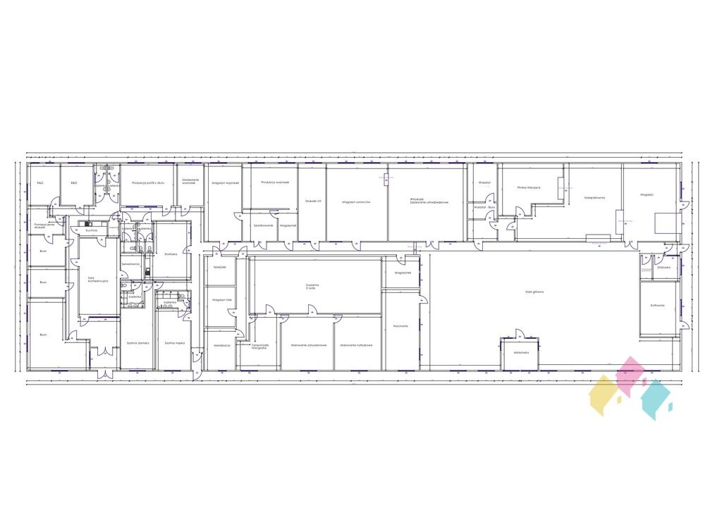 część produkcyjna z pomieszczeniami produkcyjnymi, magazynowymi i